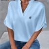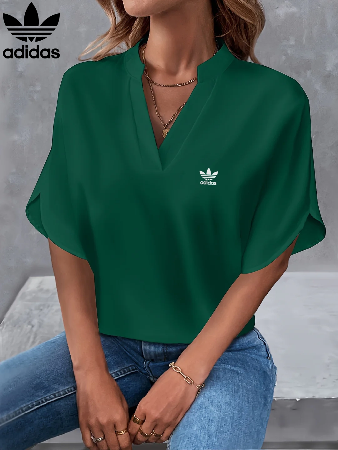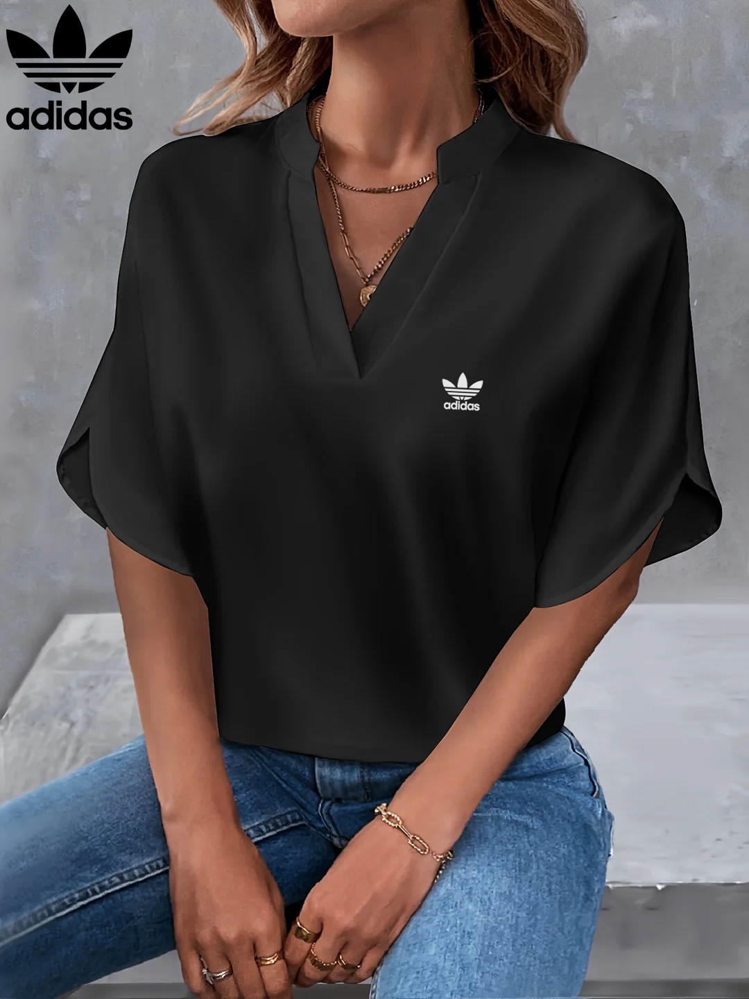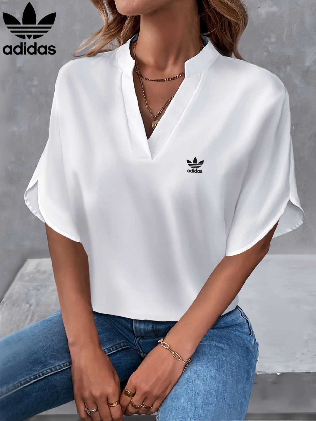 Upgrade your wardrobe with Adidas – New V-Neck Blouse – where effortless style meets everyday elegance!